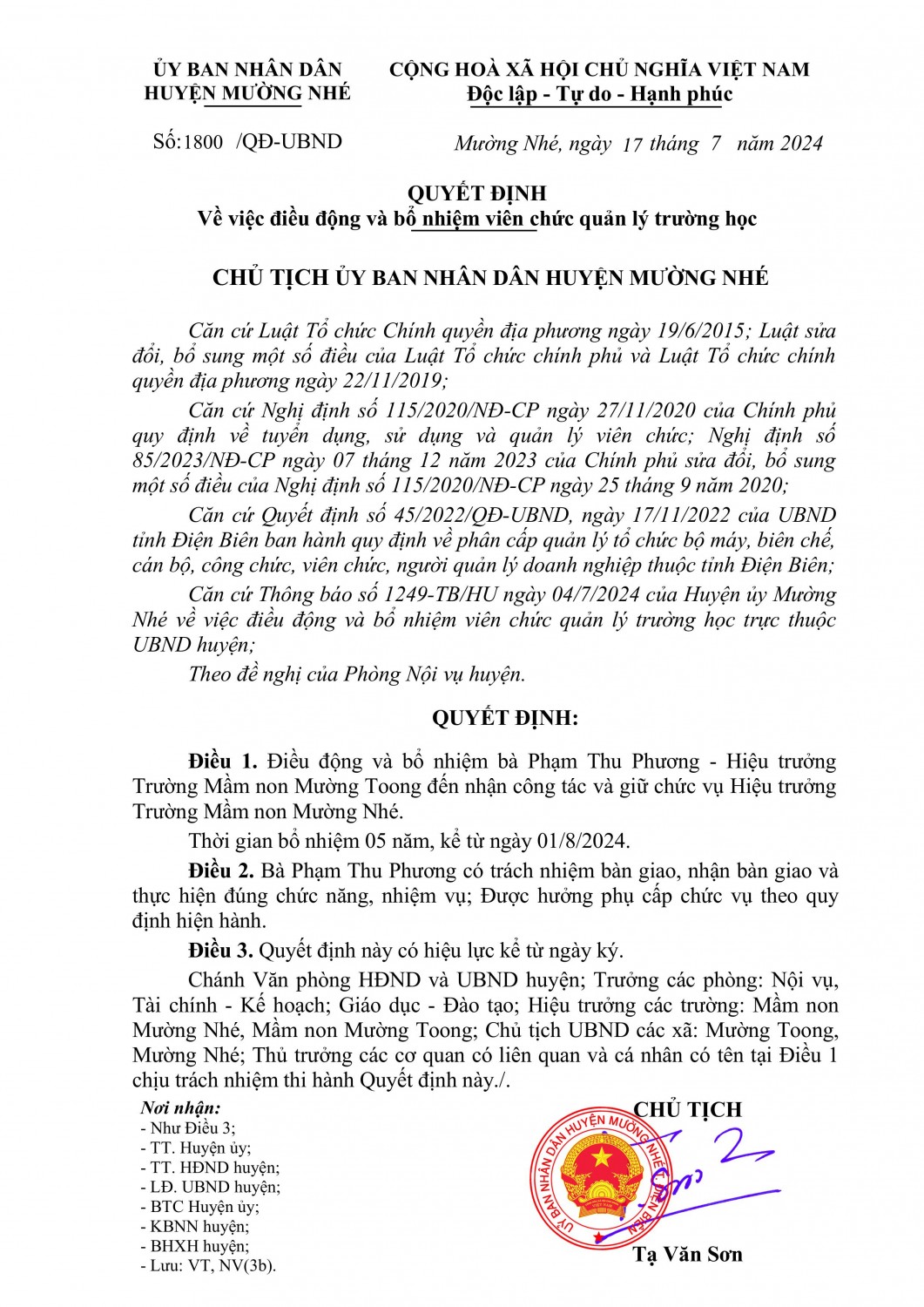 Số 39/TĐ-MNMN