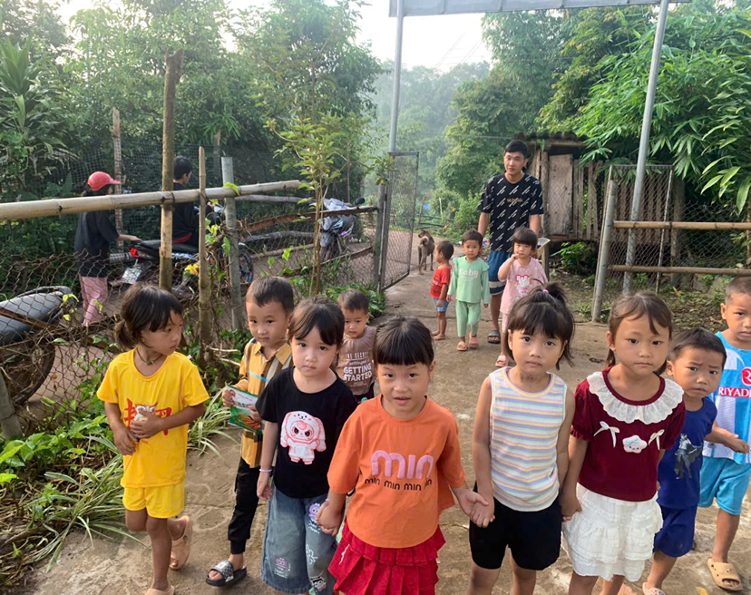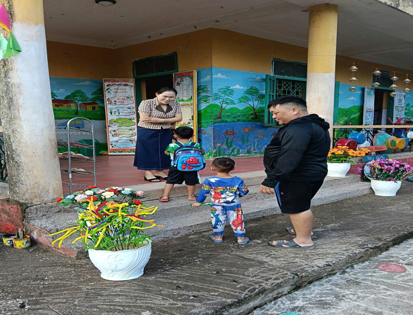 Cô đón trẻ điểm trường Huổi Cọ