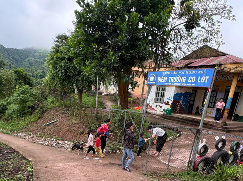 Cô đón trẻ từ cổng trường điểm trường Co Lót