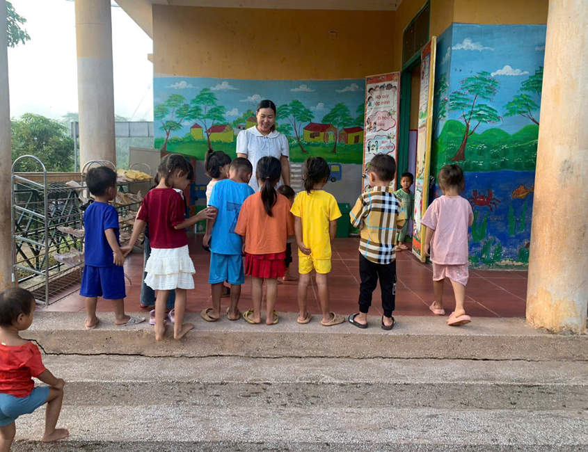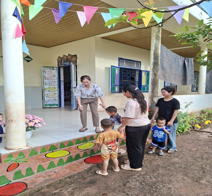 Cô ân cần đón trẻ ở điểm trường Huổi Ban