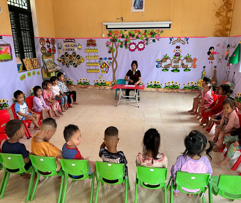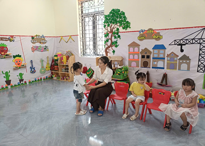 Cô trò chuyện với trẻ ở điểm trường trung tâm