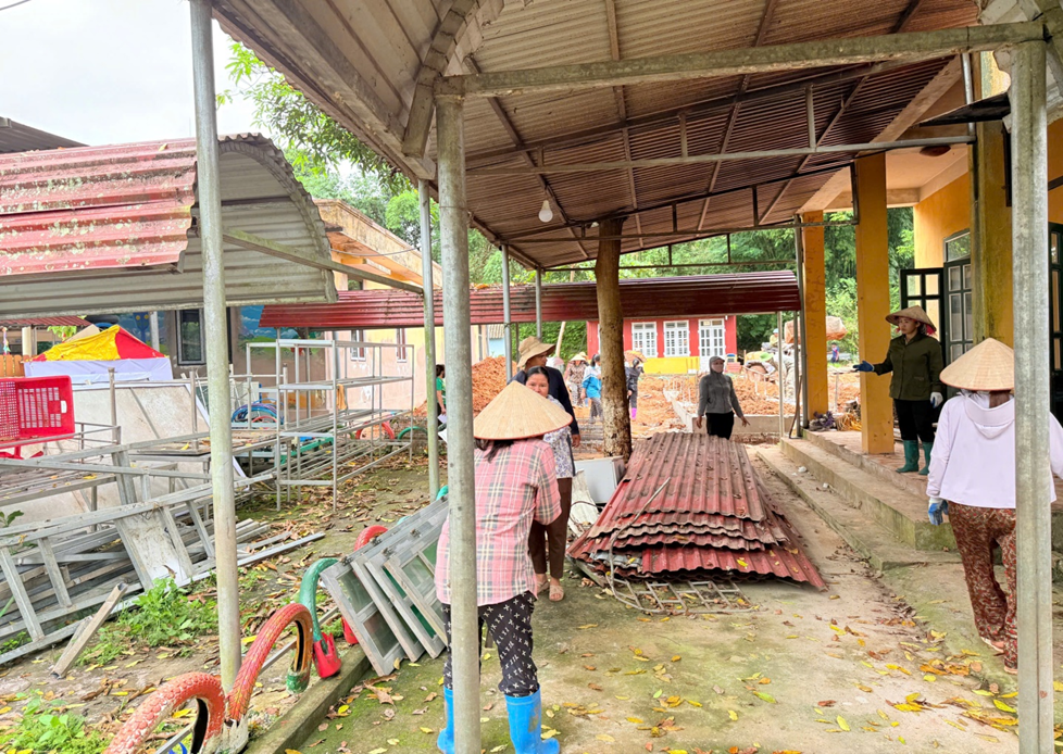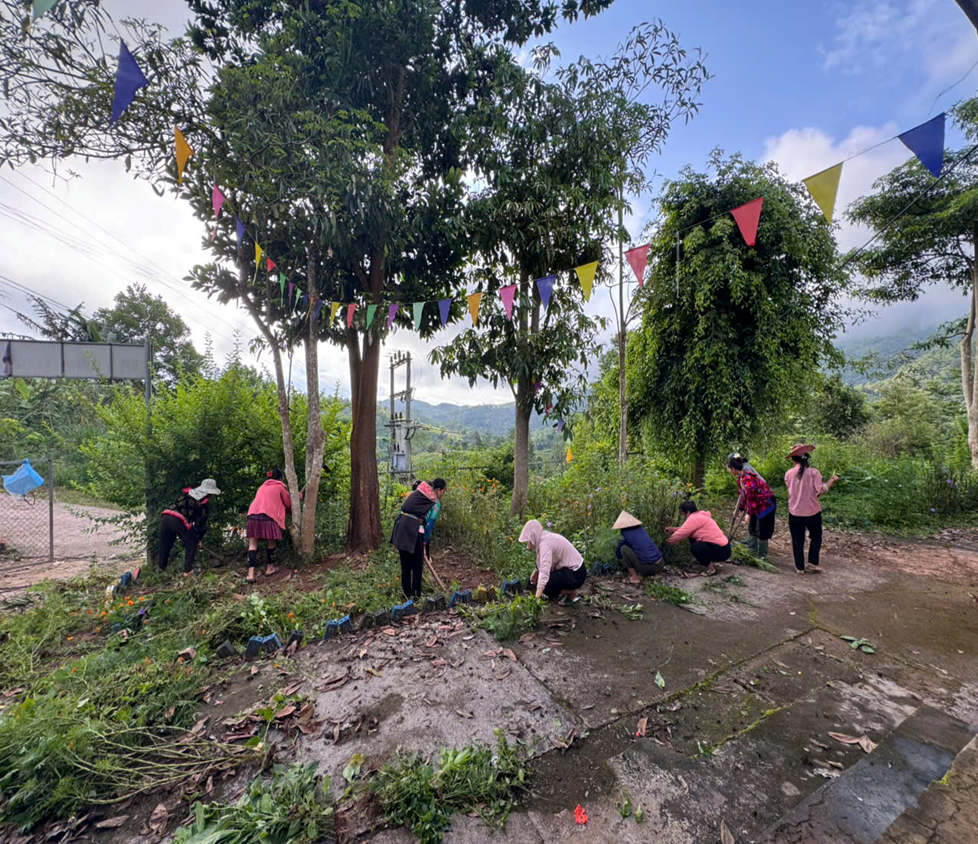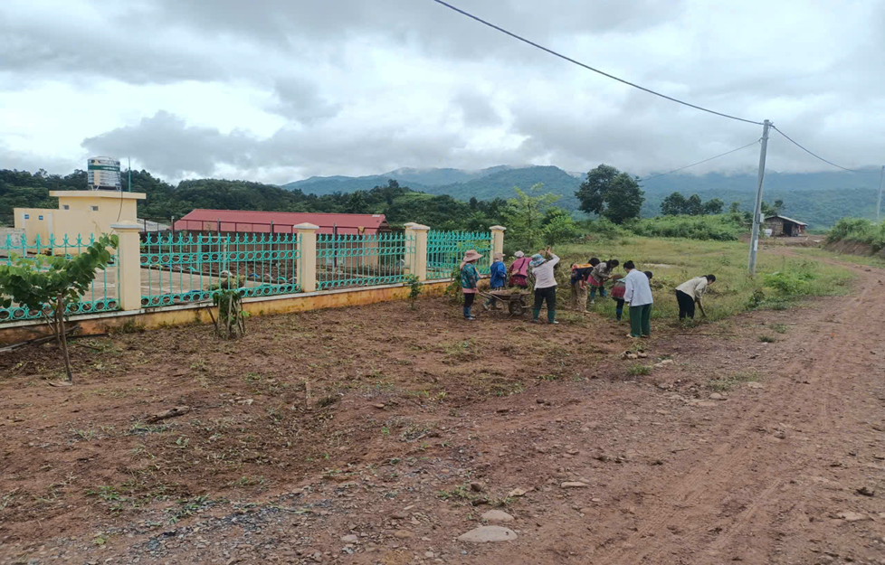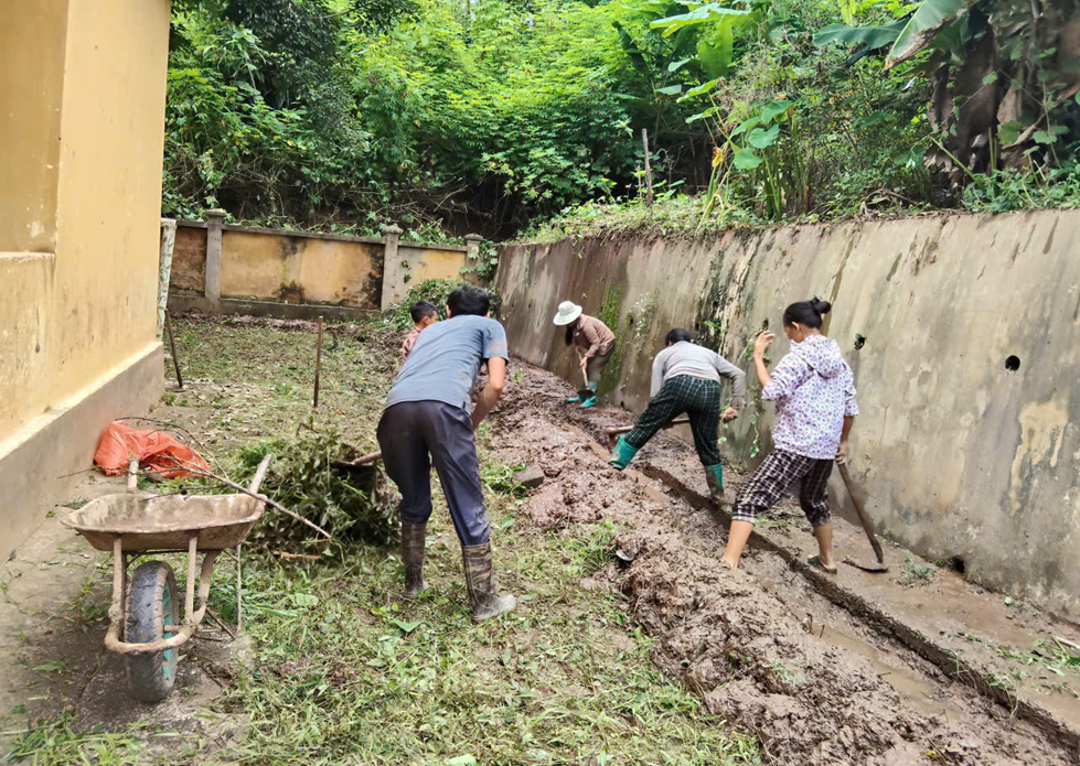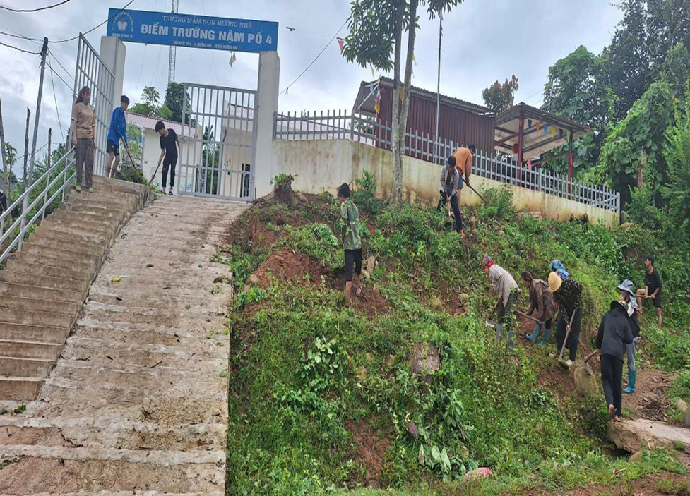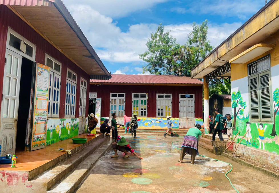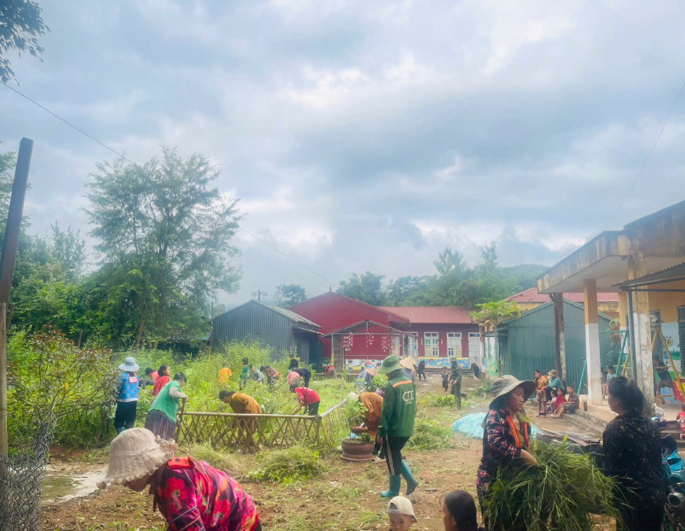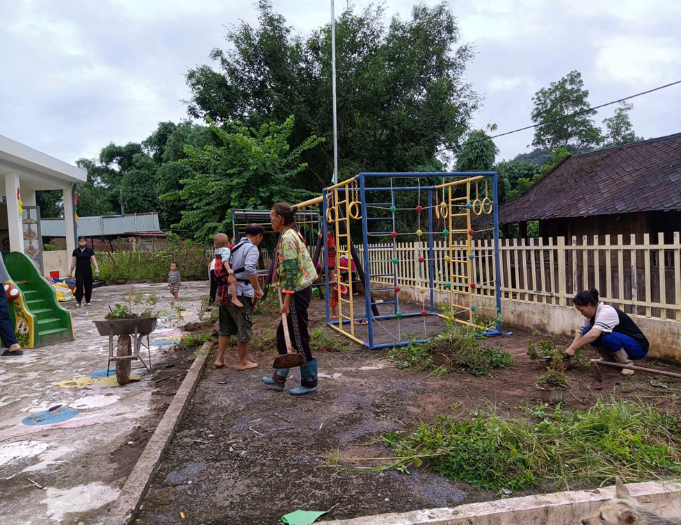 Để chuẩn bị tốt các điều kiện cho học sinh trở lại trường trong năm học 2025 – 2026, CBGV-NV trường mầm non Mường Nhé tổ chức lao động, vệ sinh trường lớp