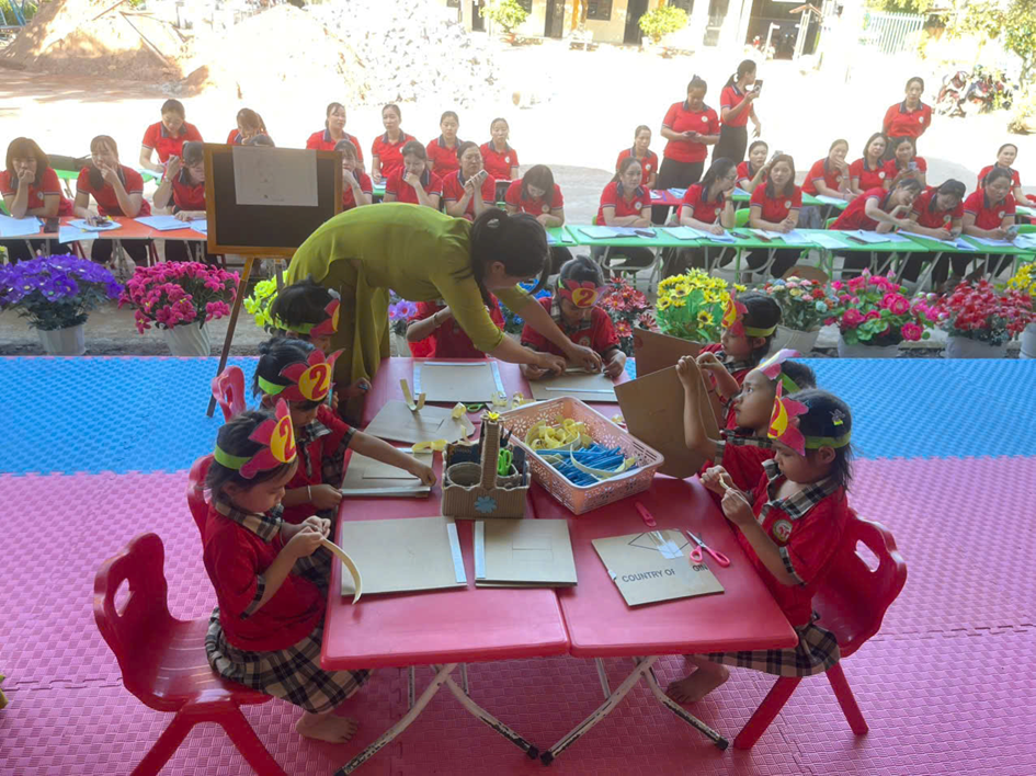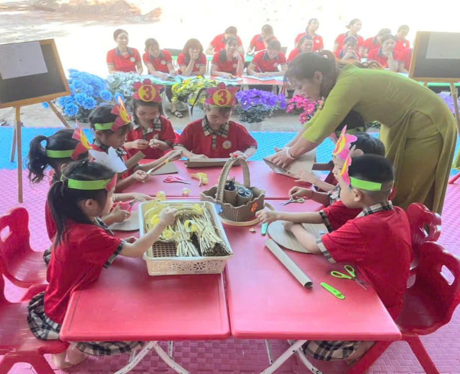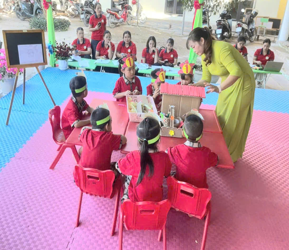 Dưới đây là một số hình ảnh tiết dạy ứng dụng Steam “ Làm ngôi nhà” và hình ảnh, video chia sẻ kinh nghiệm "Tạo cảnh quan môi trường và ứng dụng STEAM trong giảng dạy" :