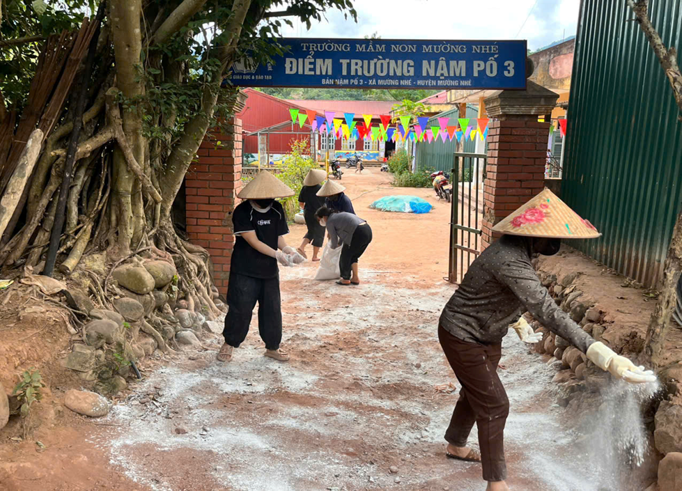 🏥🏥 Nhằm bảo vệ sức khoẻ, tăng cường công tác phòng chống dịch Lỵ trực trùng, trong 2 ngày thứ bảy - chủ nhật, Trường Mầm non Mường Nhé, từ trung tâm đến điểm trường, giáo viên, nhân viên nhà trường cùng phối hợp với các bậc phụ huynh tổ chức nhiều hoạt động thiết thực như: Vệ sinh, phun khử khuẩn khu vực bếp ăn, lớp học, rắc vôi bột xung quanh khu vực các lớp, nhà vệ sinh, khu vui chơi ngoài trời, tích cực tuyên truyền đến các bậc phụ huynh về việc đảm bảo an toàn thực phẩm và giữ gìn vệ sinh cá nhân cho trẻ tại gia đình.